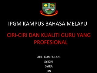 21 adalah sebagai berikut. IPGM KAMPUS BAHASA MELAYU CIRI-CIRI DAN KUALITI GURU YANG PROFESIONAL AHLI KUMPULAN. Selain terampil dalam mengajar guru profesional juga harus mempunyai kemampuan pengetahuan yang luas bijak serta mampu bersosialisasi dengan baik.