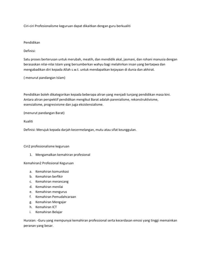 Ciri Ciri Profesionalisme Keguruan Dapat Dikaitkan Dengan Guru Berkualiti 1 Pdf